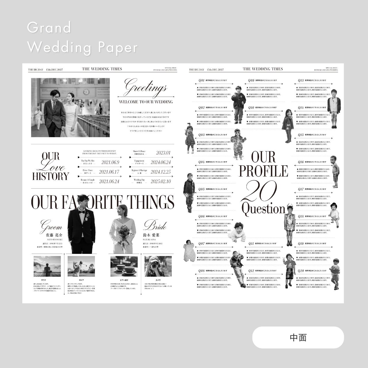 ブライダル新聞 Grand Wedding Paper[席次表入りプロフィールブック| 二つ折り ] | 結婚式・ウェディング・新聞風